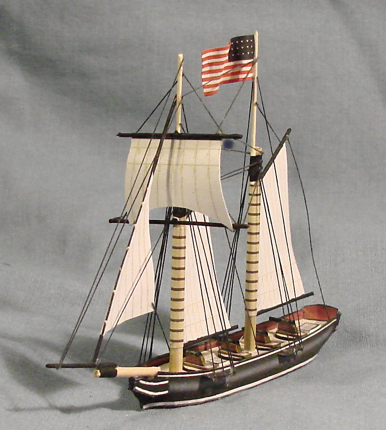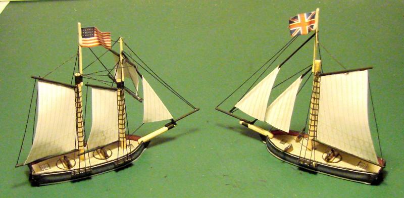 As I approach the completion of the Lake Erie squadrons, I'm building models of the various small gunboats that accompanied Barclay and Perry during the battle. Below are two examples, the American schooner Scorpion and the British sloop LIttle Belt.
