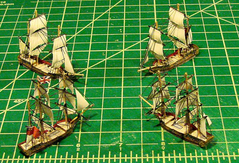 I made some modifications to a few of the AWI kits for a mid-eighteenth century scenario I plan to run at this year's Seven Years War convention, which will feature a Royal Navy squadron taking on a bunch of French corsairs. You can read a full account of the action on the Reports page.
